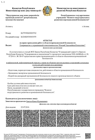 Kaspi Education Consulting LLP conducts an expertise in the sphere of industrial safety